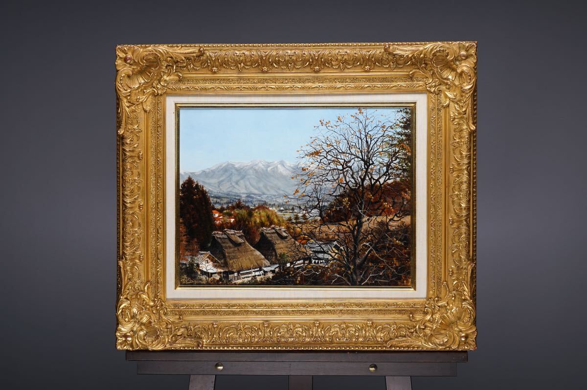 > 真作保証 北山達哉「晩秋」油絵 F6号(41cmx32cm) サイン・裏書あり 戎橋画廊取扱品 民家のある里山の秋風景