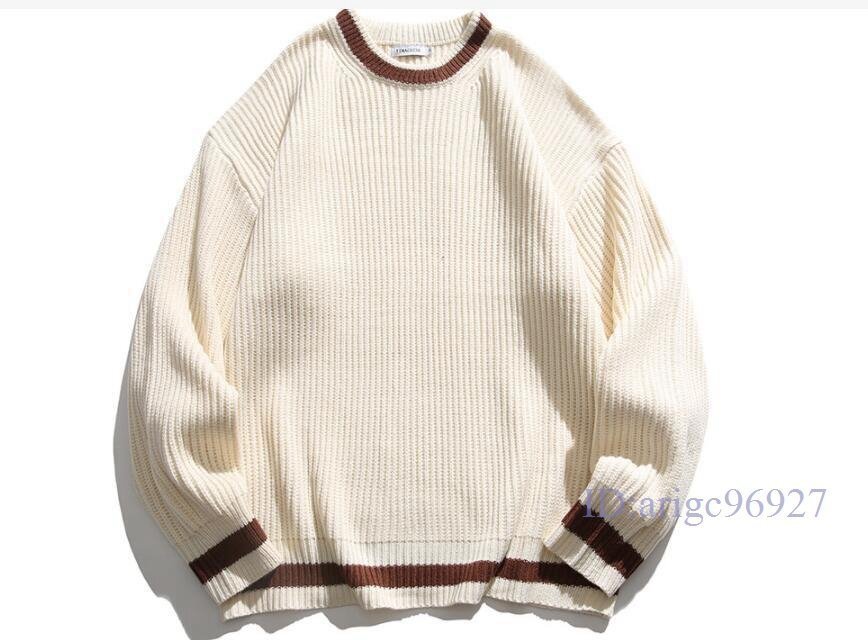 > S498☆新品メンズ セーター ニット 長袖セーター アウター モックネック カジュアル トップス シンプル メンズニット 防寒 カーキ L
