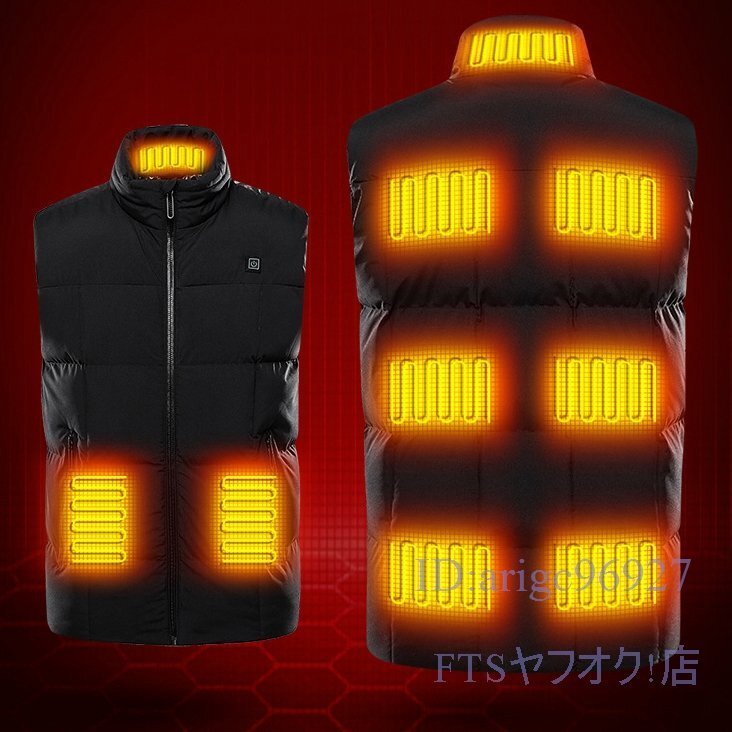 > X206☆加熱ベスト USB加熱 電熱ジャケット電熱ウエア 男女兼用 3段階温度調節 9つヒーター内蔵 保温防寒 水洗い可能 作業着 6XL