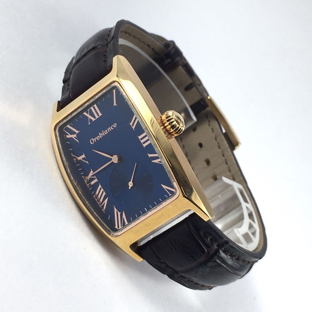 - Orobianco オロビアンコ デルノンノ スクエア ウォッチ ローマンインデックス 文字盤ネイビー クロコ型押し ベルト ブラウン メンズ腕時計