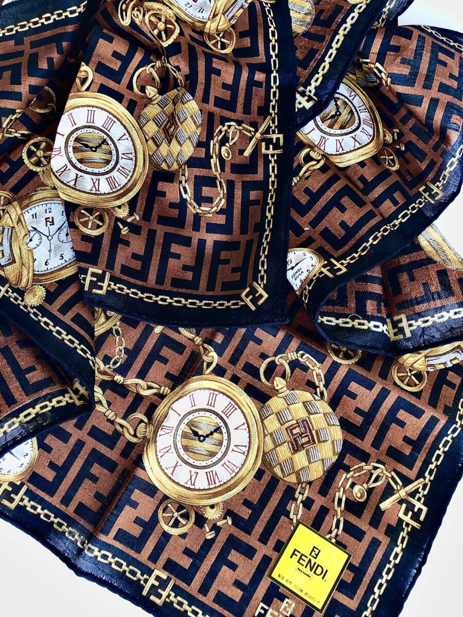 - 稀少柄★フェンディFENDI◆ハンカチ ミニスカーフストール★膝掛け (0404F42セ1750)