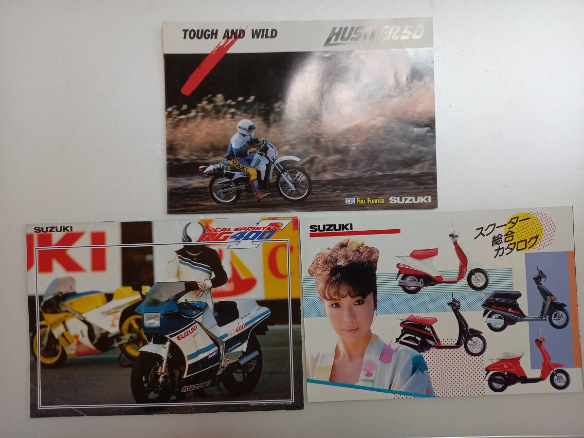 > SUZUKI オートバイ バイク カタログ パンフレット 昭和 旧車スズキ ハスラー50 RG400 鈴木自動車工業 伊藤蘭 一世風靡セピア 当時物
