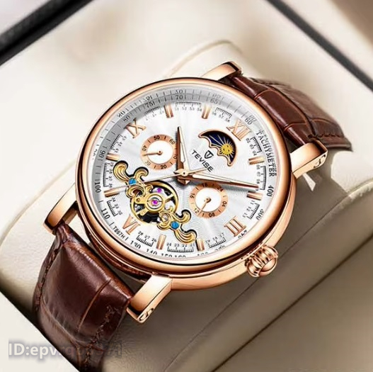 - 高級腕時計 男性 アナログ 機械式自動巻 トウルビヨン 多機能 昼夜表示 夜光表示 24h メンズ ウォッチ 防水3ATM 本革ベルト 紳士用 /白