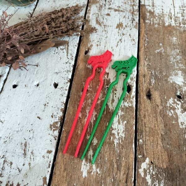 - 送料無料 70-80s ヴィンテージ レトロ ブーツキーパー 赤 緑 2本セット ローラースケート ファンシー ビンテージ 古道具