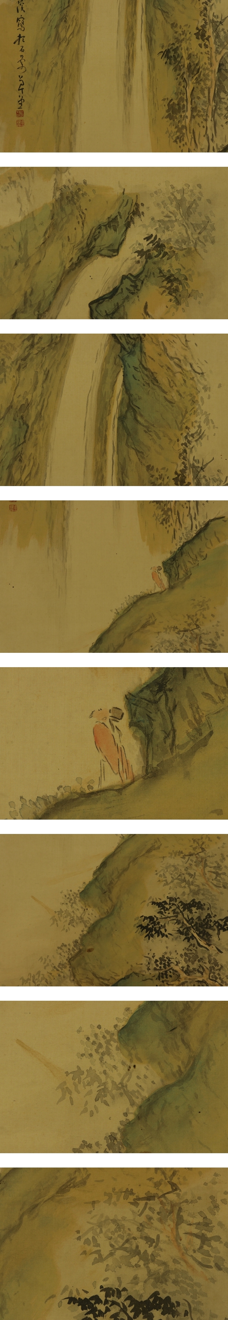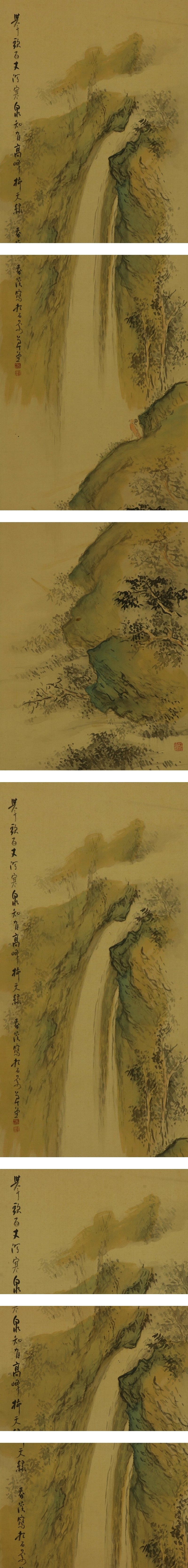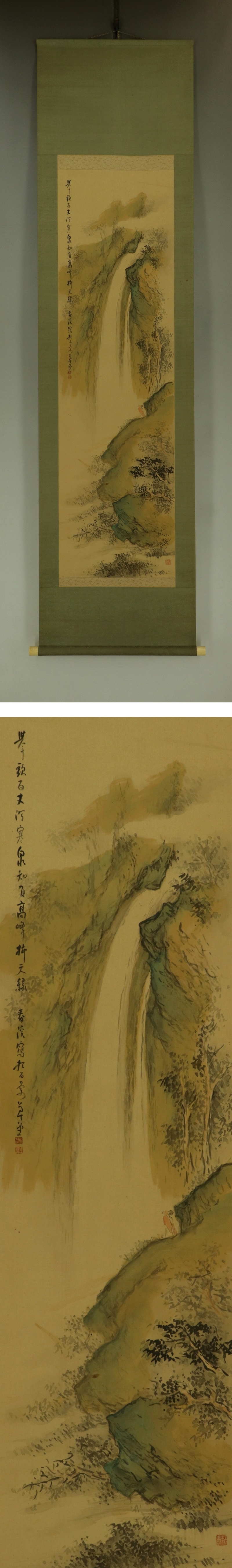 - 【模写】横山春渓【高士観瀑図】◆絹本◆共箱◆掛軸 s07064