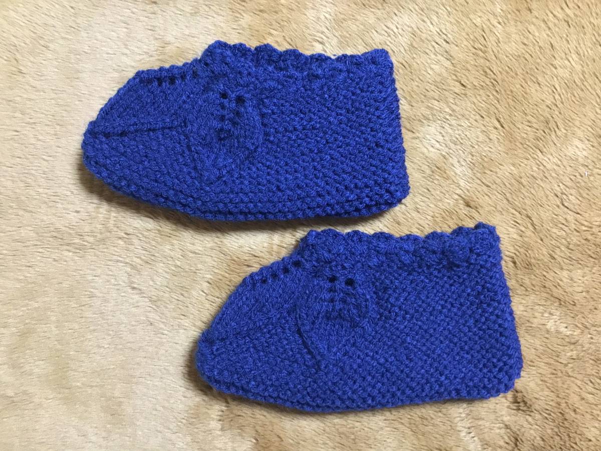 - 【編17】手編みルームシューズ(ネイビー)やや大きめ ハンドメイド 毛糸 ルームソックス 靴下カバー フットカバー 部屋履き 室内履き