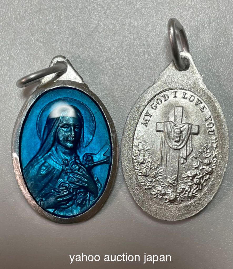 - メダイ 1個 フランス輸入 ヴィンテージ メタルチャーム ロザリオパーツ ブルー