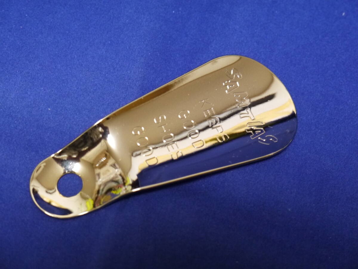 - ☆SAMTIAS.〃サムティアス ブラスシューホーン/真鍮ゴールドメッキ携帯用靴ベラ〃95mm×40mm/30g・未使用保管品★