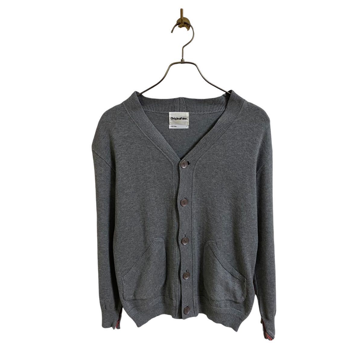 > 【オリジナルフェイク OriginalFake KAWS 2010SS ニット コットン カーディガン グレー TEETH メンズ1 猫目ボタン メディコムトイ】