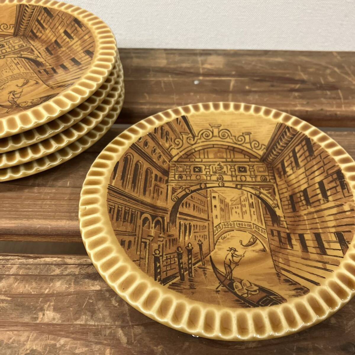 - レトロ◆クッキーの様なかわいいお皿 ソーサーにも ケーキ皿 5客セット ビンテージ 昭和レトロ 当時物 陶器 管S-62