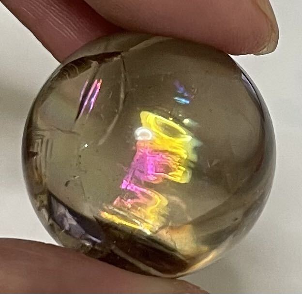 > スモーキークォーツ 007 茶水晶 クリスタル丸玉 スフィア 置物 魔除 お守 風水晶 幸運 ラッキー 高品質 天然石 レインボー 虹入