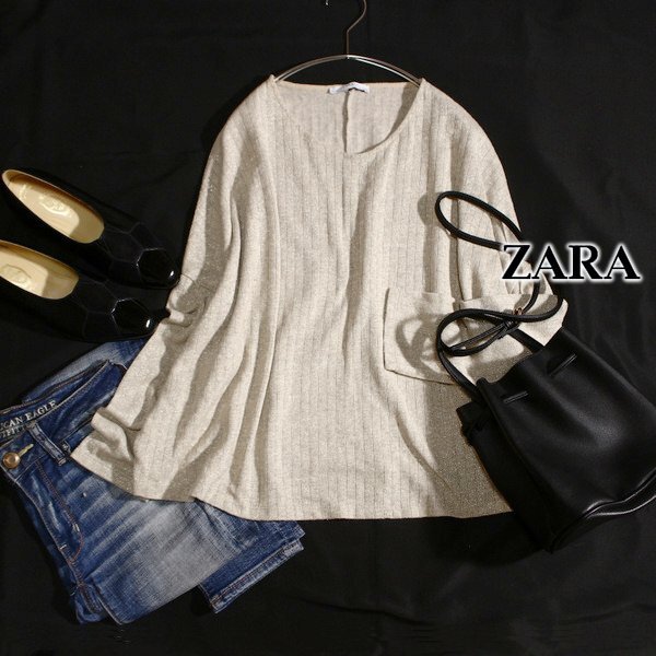 > 美品 ザラ ベーシック ZARA BASIC ゆったり綺麗め コットン ラメニット プルオーバー L 春 秋 合服 24C09