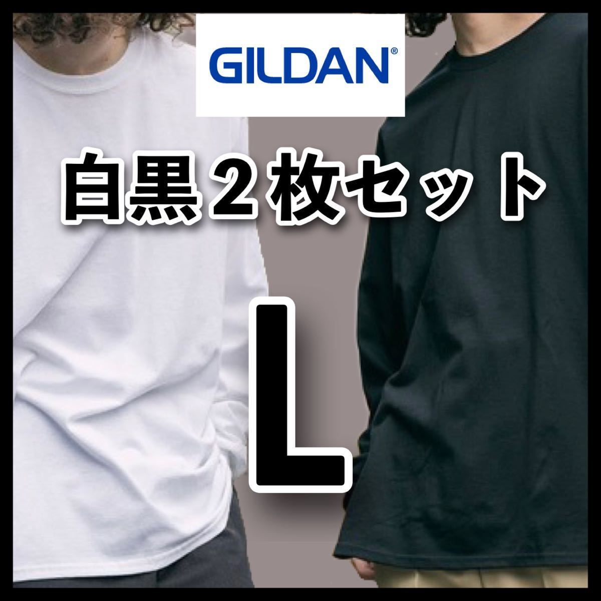 - 新品 ギルダン 6oz ウルトラコットン 無地長袖Tシャツ ロンT 白黒2枚 L