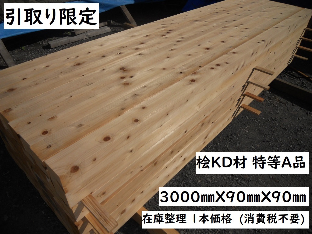 - 引取限定】 桧 KD特等A品 3000X90mm角 人工乾燥プレーナー 10尺X3寸 建築構造材 ウッドデッキ 支柱 乾燥 木材 材料 ヒノキ 檜 ひのき 9cm