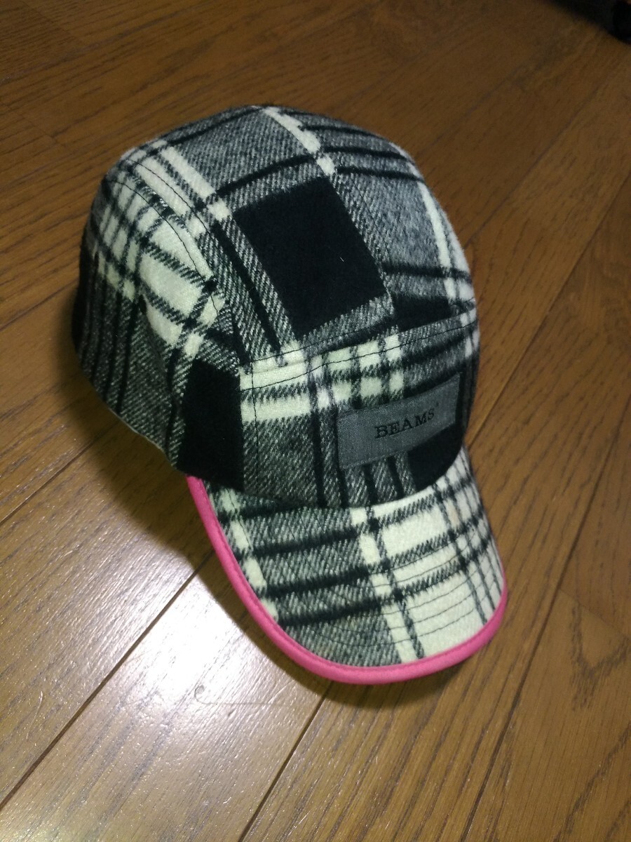 > BEAMS ビームス ▼ ボックスロゴ キャップ メンズ レディース ユニセックス フリーサイズ チェック ウール混 ゴルフ 帽子