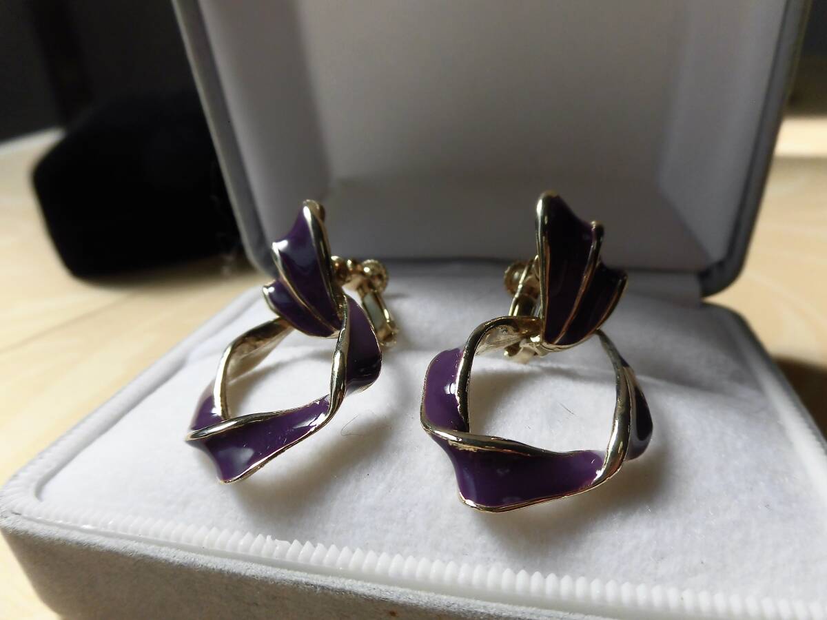 - ●未使用美品/古代紫パープルゴールド/揺れる大ぶりイヤリング/クリップ式