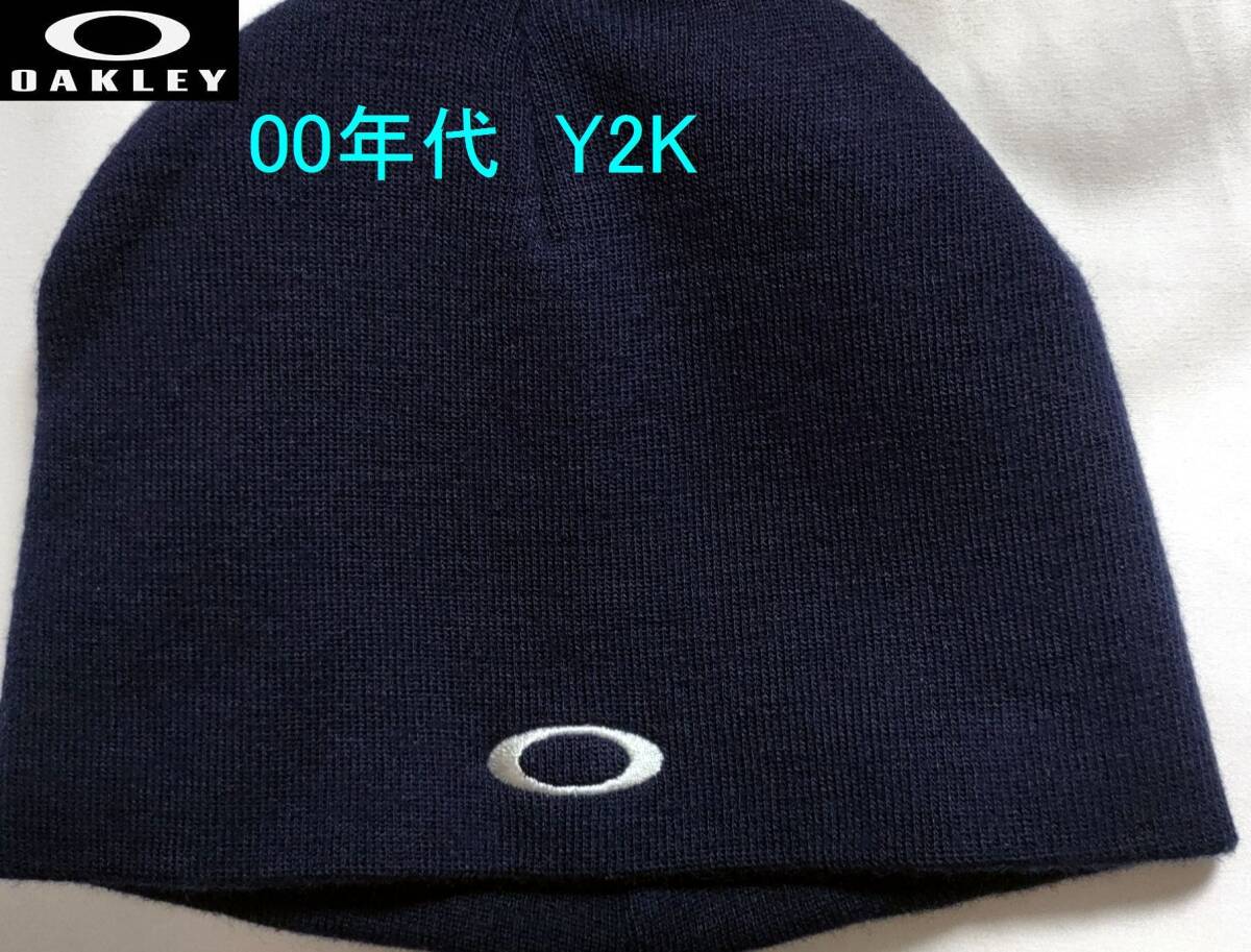 - 00S Y2K OAKLEY 刺繍 ニットキャップ ① 紺