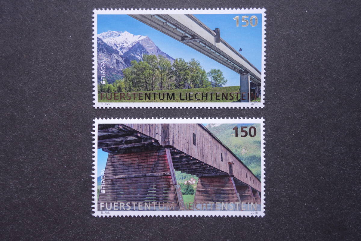 - 外国切手: リヒテンシュタイン切手 「(2018年ヨーロッパ切手)共通テーマ・橋」 2種完 未使用