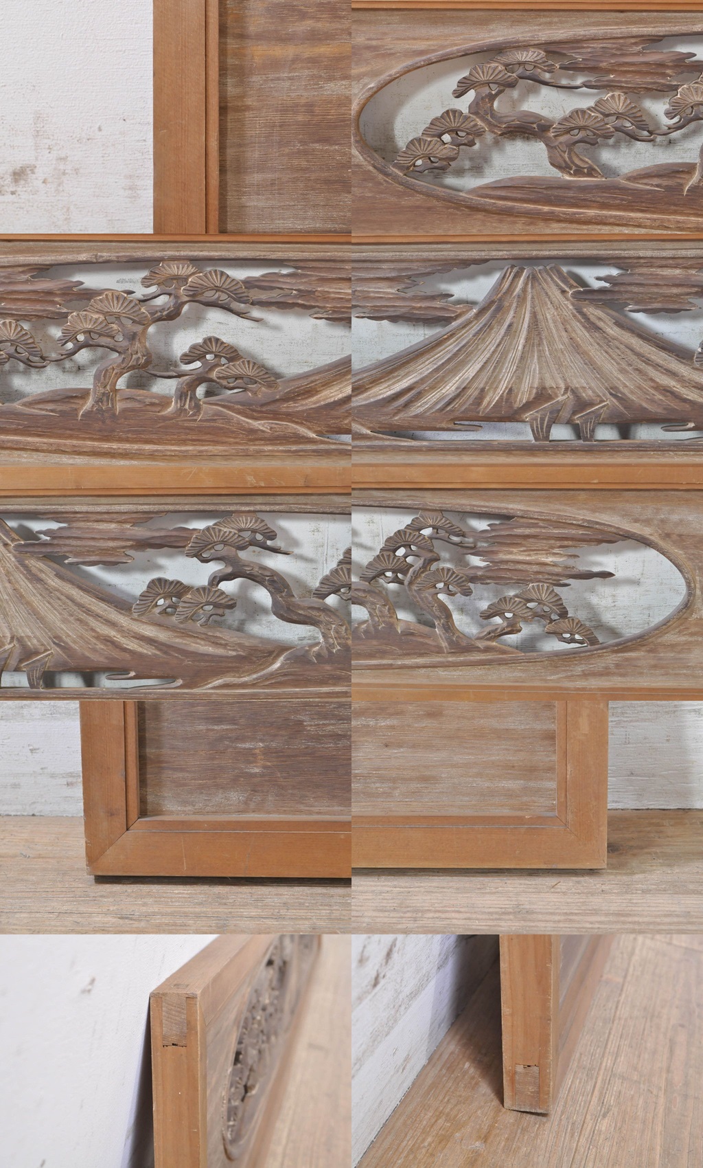 - R-073602 アンティーク建具 希少デザイン 富士山に松のデザインが素敵な両面彫刻欄間1枚(明り取り、明かり取り)(R-073602)