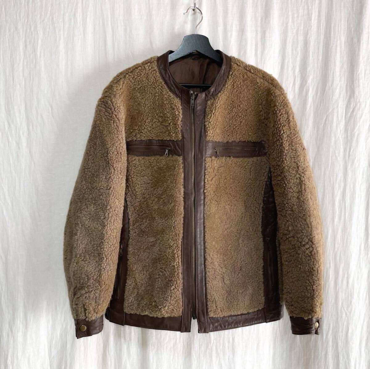 - 貴重 50s ユーロヴィンテージ 西ドイツ製 ムートンボア グリズリージャケット 熊ジャン レザー M〜L相当