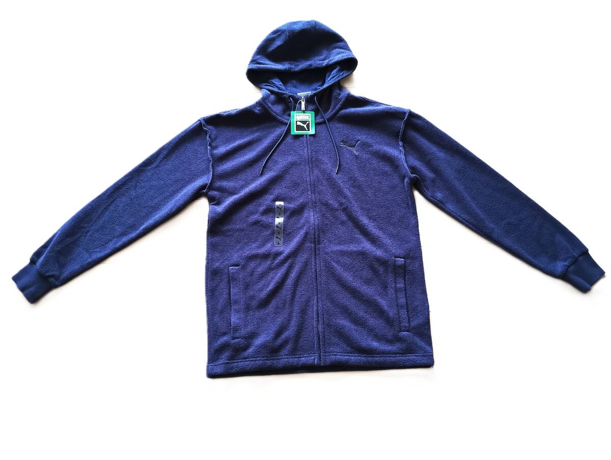 - 241004 新品 PUMA プーマ タオル地 裏起毛 ジップアップ 紺 S ユニセックス