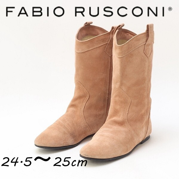 - ◆FABIO RUSCONI ファビオ ルスコーニ スエード フラット ブーツ ライトベージュ 38