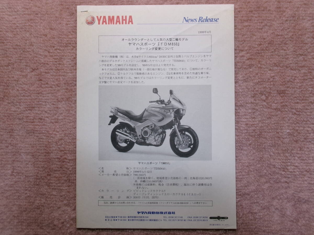 - *‘99年 TDM850のニュースリリース*