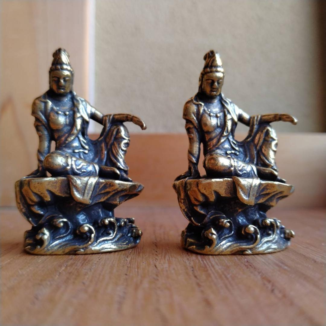 - 水月観音菩薩 仏像 真鍮 アンティーク 置物 お守り 約5cm 2個お得セット
