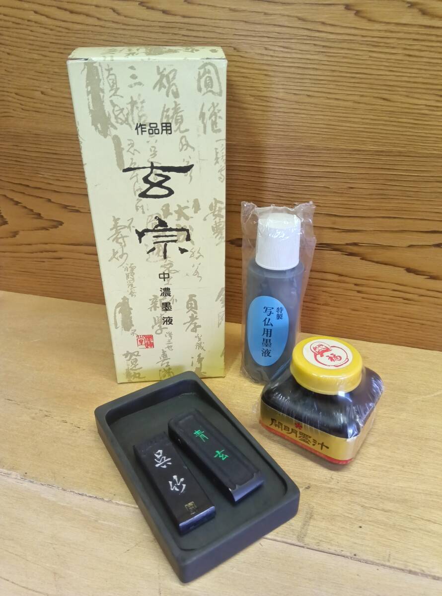 - 24100602 墨硯セット 玄宗 開明墨汁 呉竹 青玄 作品用 墨汁セット 硯 書道 水墨画