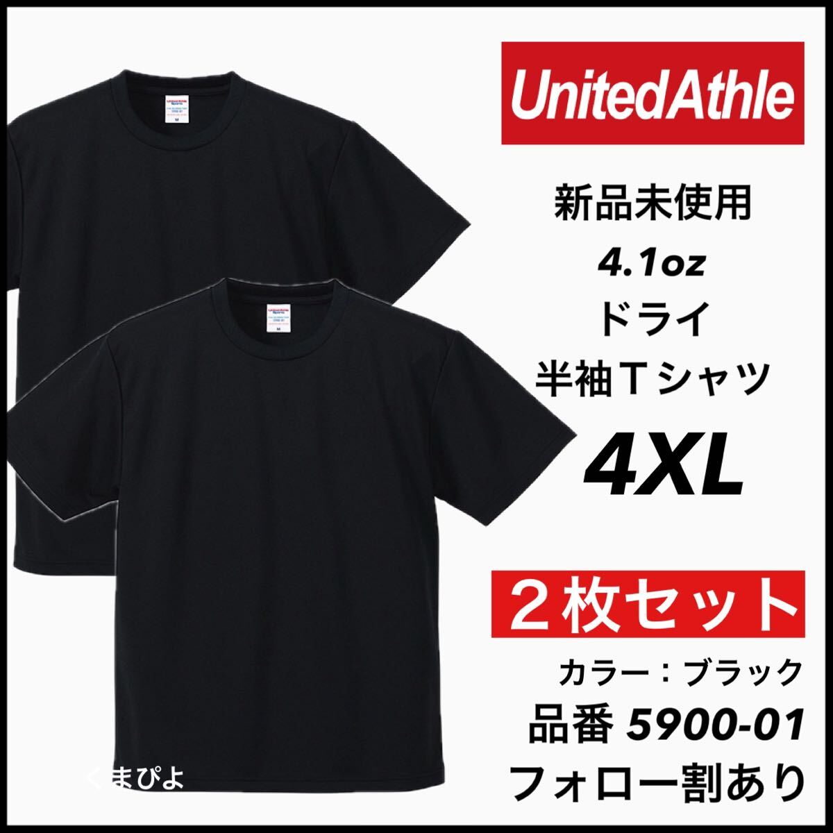 - 新品 ユナイテッドアスレ 4.1oz 半袖 ドライアスレチックTシャツ 無地 吸汗 インナー スポーツ ダンス 黒 ブラック 2枚 4XL ビッグサイズ