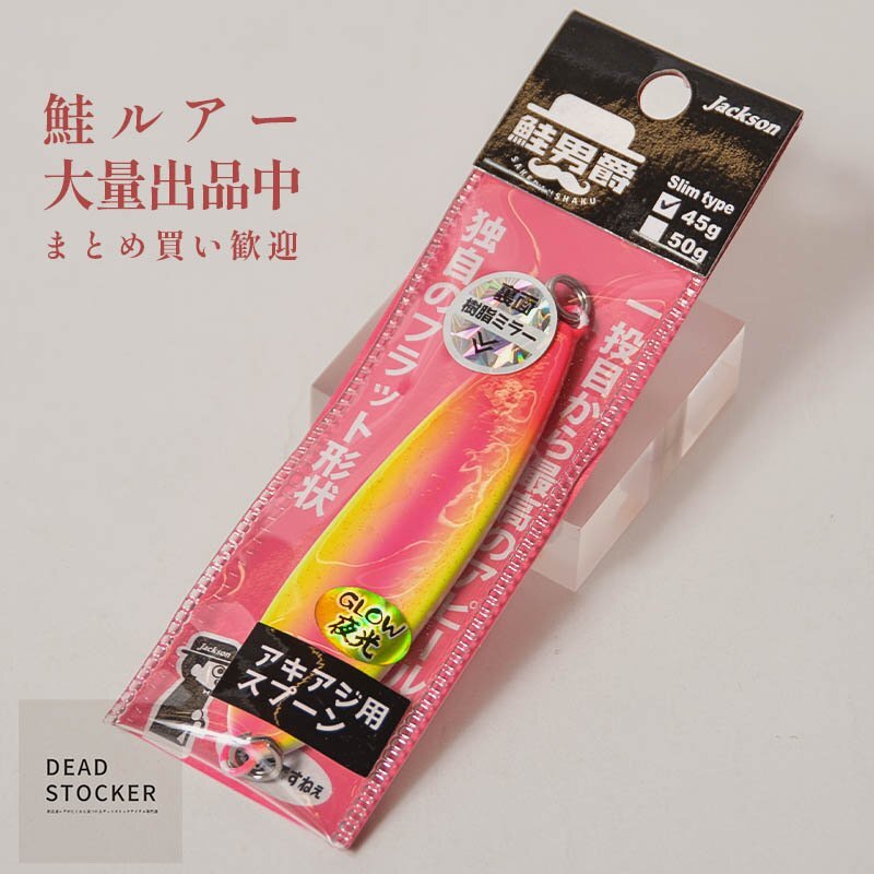 - 鮭ルアー【新品】ジャクソン 鮭男爵 スリム 45g ピンクラインダブルグロー (#PLW) サケ釣り ウキルアー アキアジ ルアー スプーン 北海道