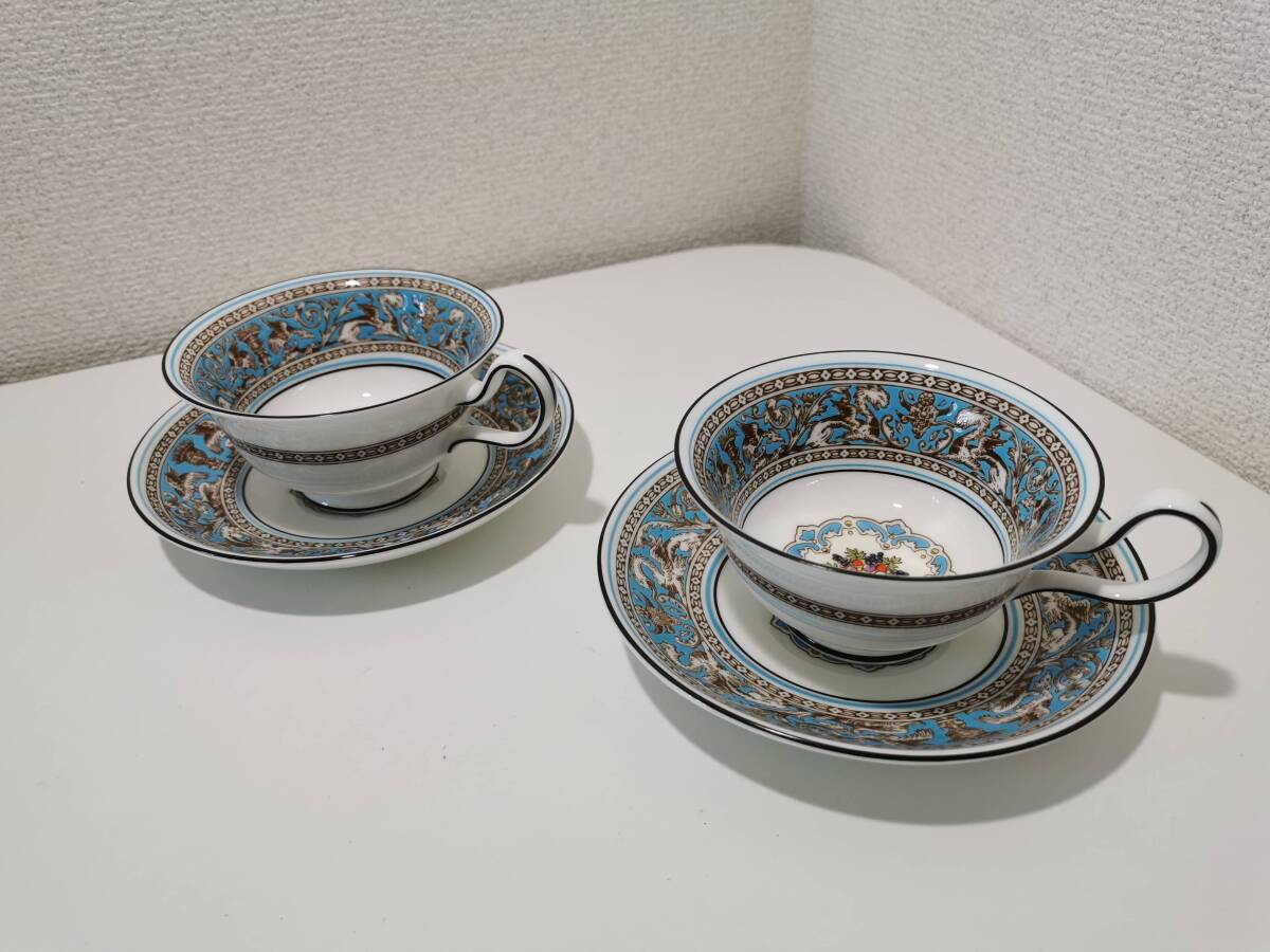 > 160909S07-1008S□WEDGWOOD ウェッジウッド□美品 フロレンティーン ターコイズ カップ&ソーサー 2客
