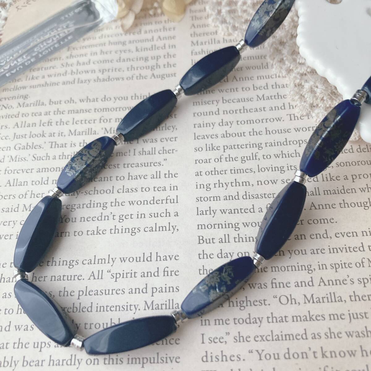 > アンティークネックレス ショート 濃紺ビーズ 模様 高級感 ヴィンテージ 美品☆Vintage jewelry accessories k0976