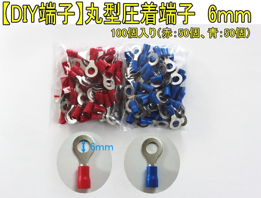 - 【DIY端子】 丸型圧着端子 6mm 12V24V 100個入(青50・赤50) 接続・分岐に! ②