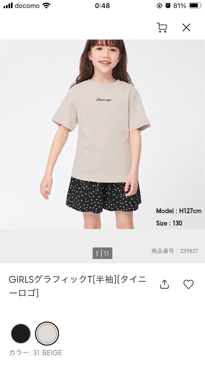 - GU GIRLS ロゴ Tシャツ サイズ130 ベージュ