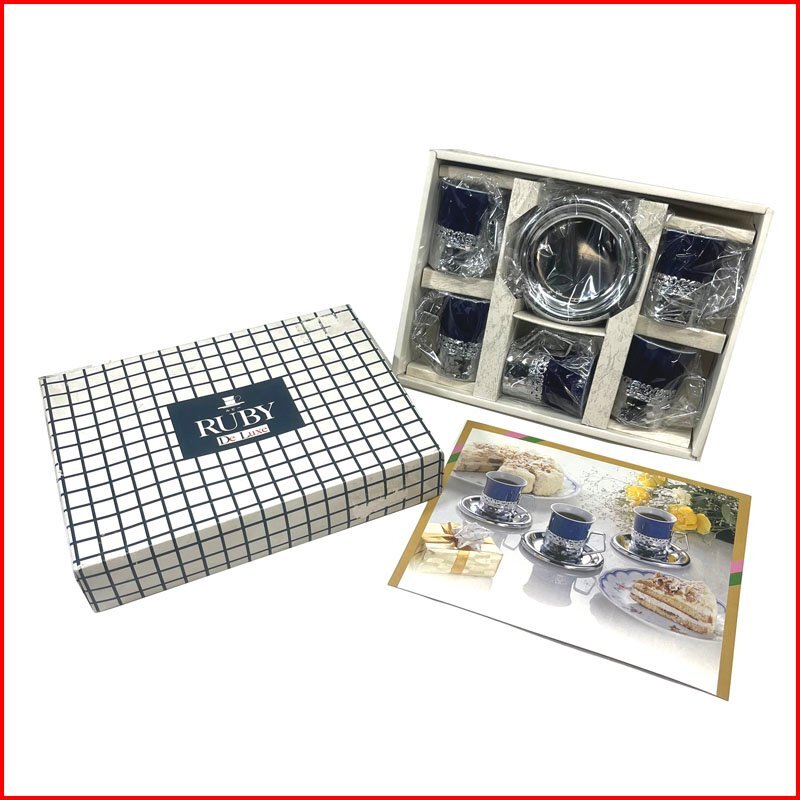 > 中古●RUBY DeLuxe ルビー カップ&ソーサー セット●5組セット コーヒーカップ 箱付き ネイビー/シルバー 札幌