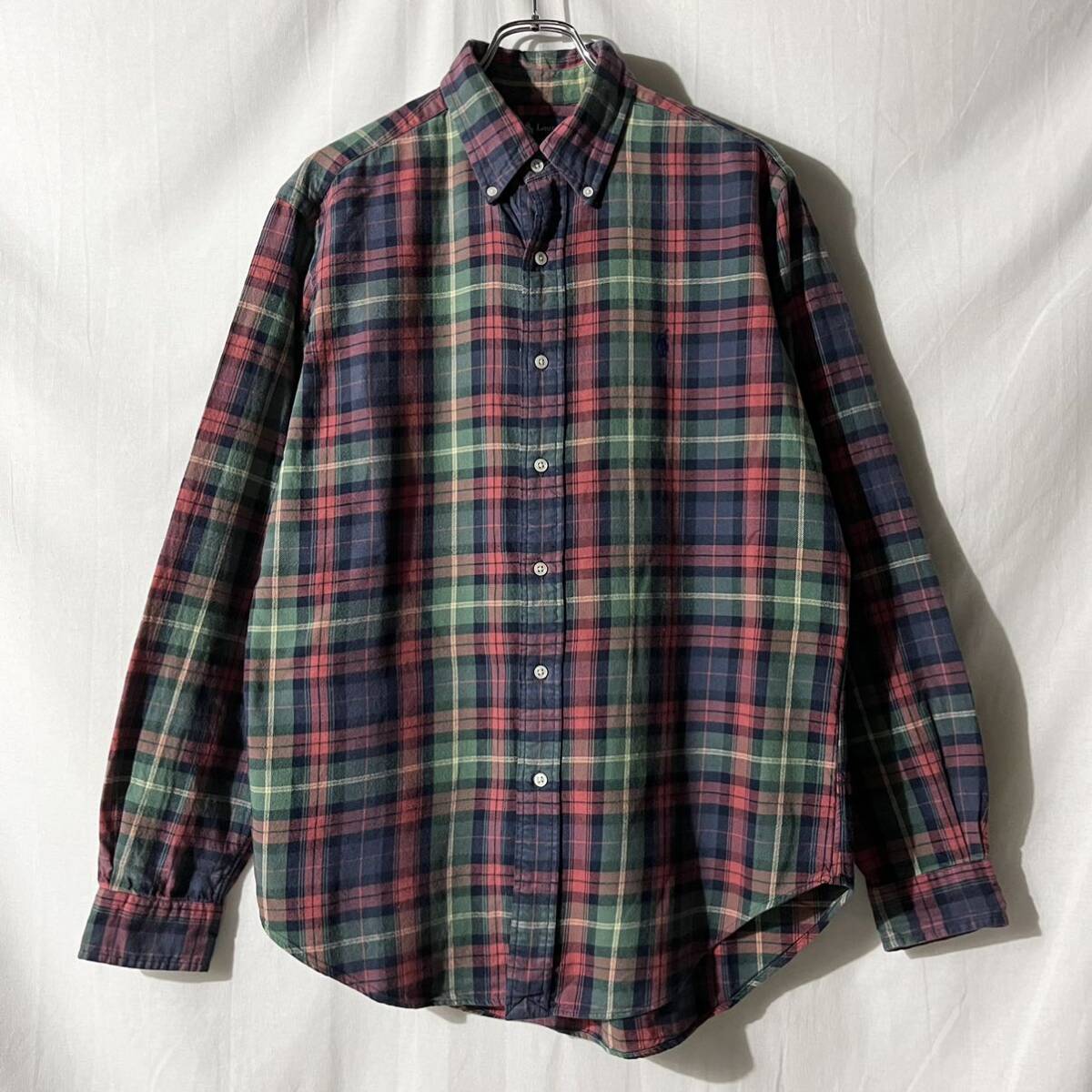 > 90s Ralph Lauren ラルフローレン 長袖 ボタンダウン チェックシャツ 紺緑赤白黄 M ヴィンテージ OLD