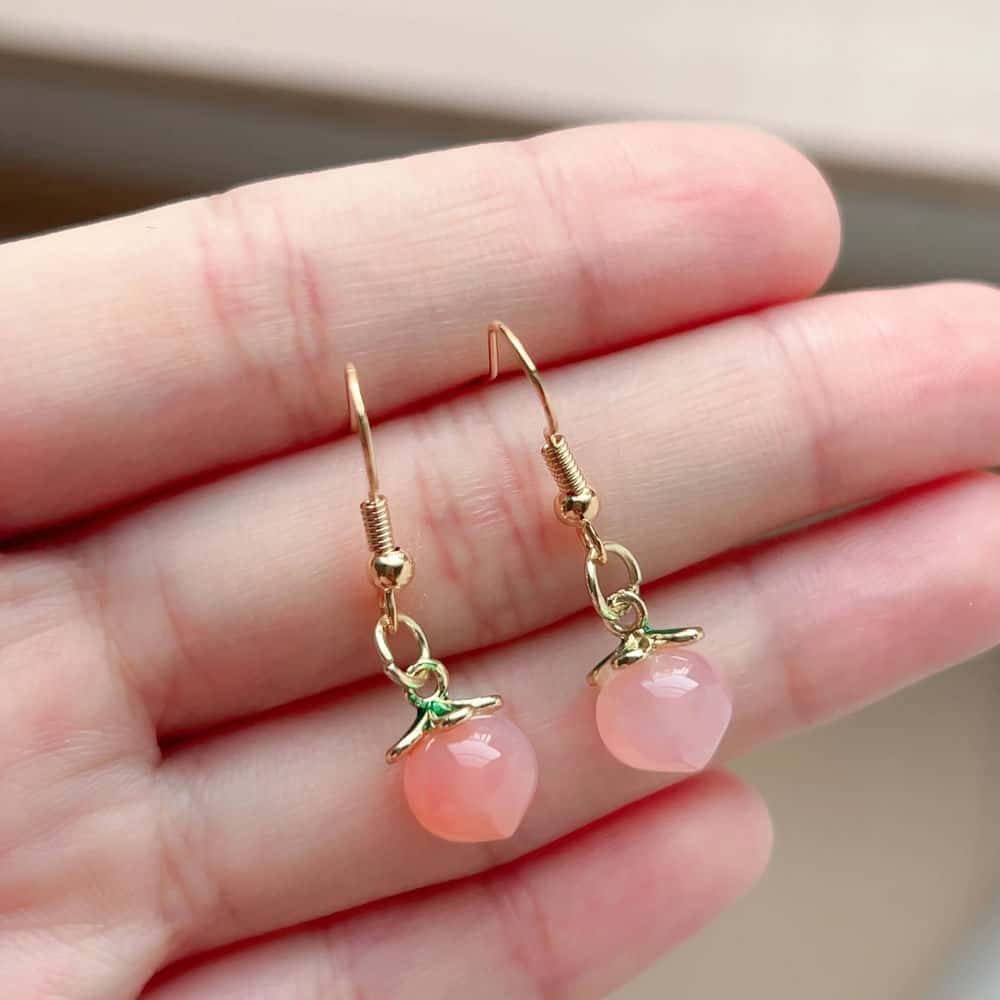 > ◇瑪瑙◇ピンクメノウ◇ピアス◇レディースイヤリング◇桃形◇天然石◇パワーストーン◇巾着袋付き◇プレゼントにも◇032R10116