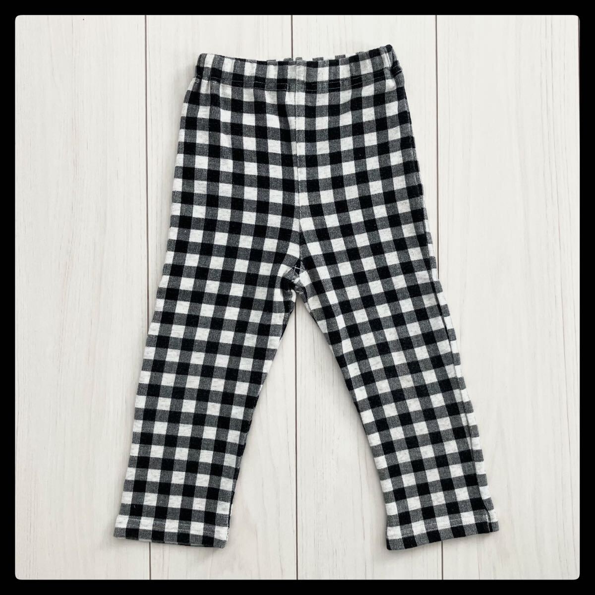 > 美品★ブロックチェック柄 レギンスパンツ 長ズボン100★ウエストゴム★黒×白★ブラック×ホワイト★送料185円 子供服 女の子 男の子 幼児