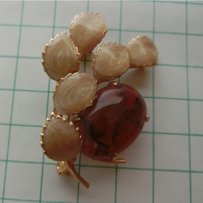 - ●本琥珀 七宝焼 リーフ ブローチ 美品 アンティーク ヴィンテージ