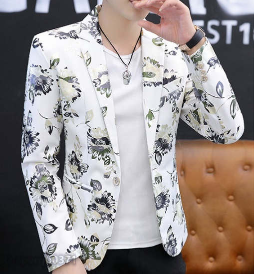 > ブレザー 新入荷☆テーラードジャケット 折り襟 スリム 花柄 メンズ カジ ュアルスーツ 紳士 トップス サイズ選択可 白/2XL
