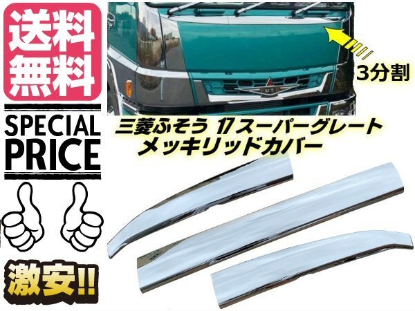 > 三菱 ふそう 17 スーパーグレート ABS 3分割 鏡面 メッキ フロント リッド カバー グリル アッパー パネル 大型 トラック 送料無料/3