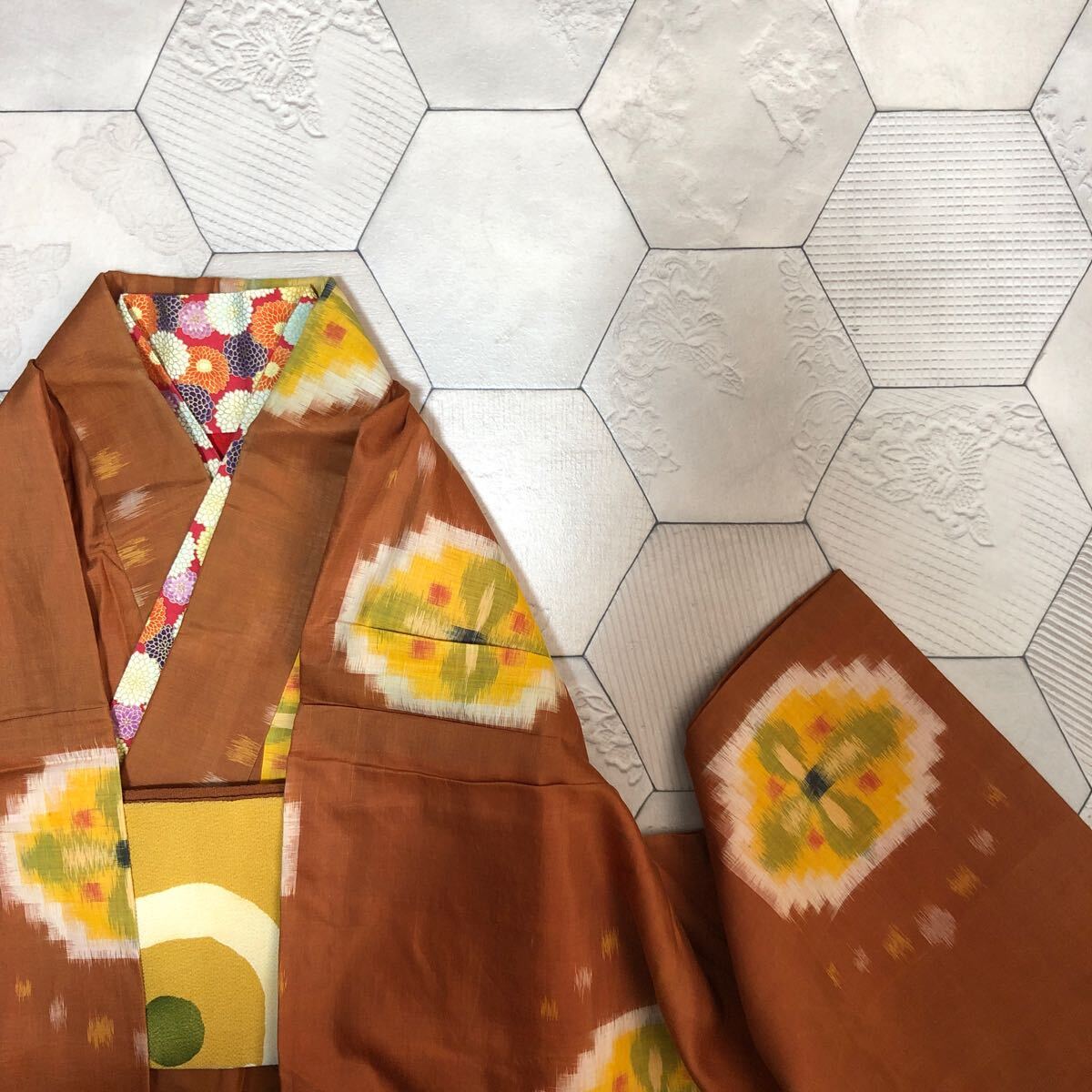- アンティーク 着物 茶色 昭和レトロ 大正ロマン モダン 和洋折衷コーデ リメイク 絹 正絹100% こ15-13y