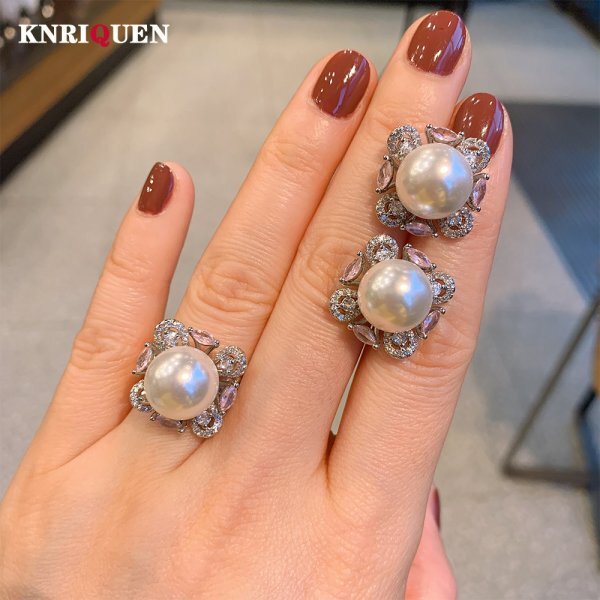 女性のためのパールジュエリーセット(リング、ピアス)、12mm