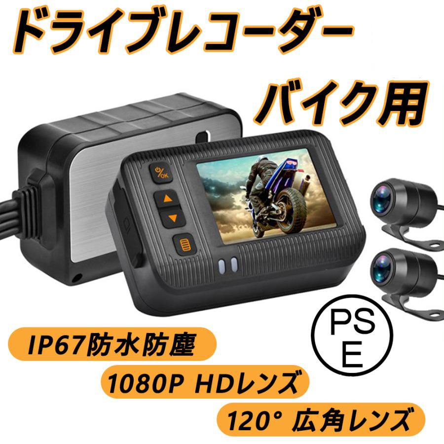 > ドライブレコーダー バイク用 前後カメラ IP67 全体 防水 防塵 2インチ 150° 広角 Gセンサー 駐車監視 USB充電可 ホルダー付
