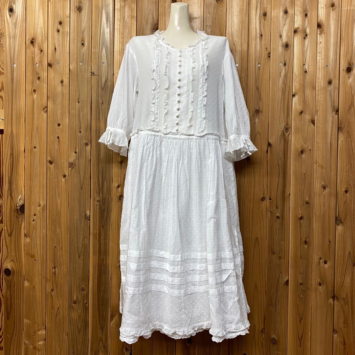 > 美品☆PINKHOUSE * ピンクハウス ◆ 綿ローン ロングワンピース 白 フリル ピコレース 総ローン素材 レース ドット
