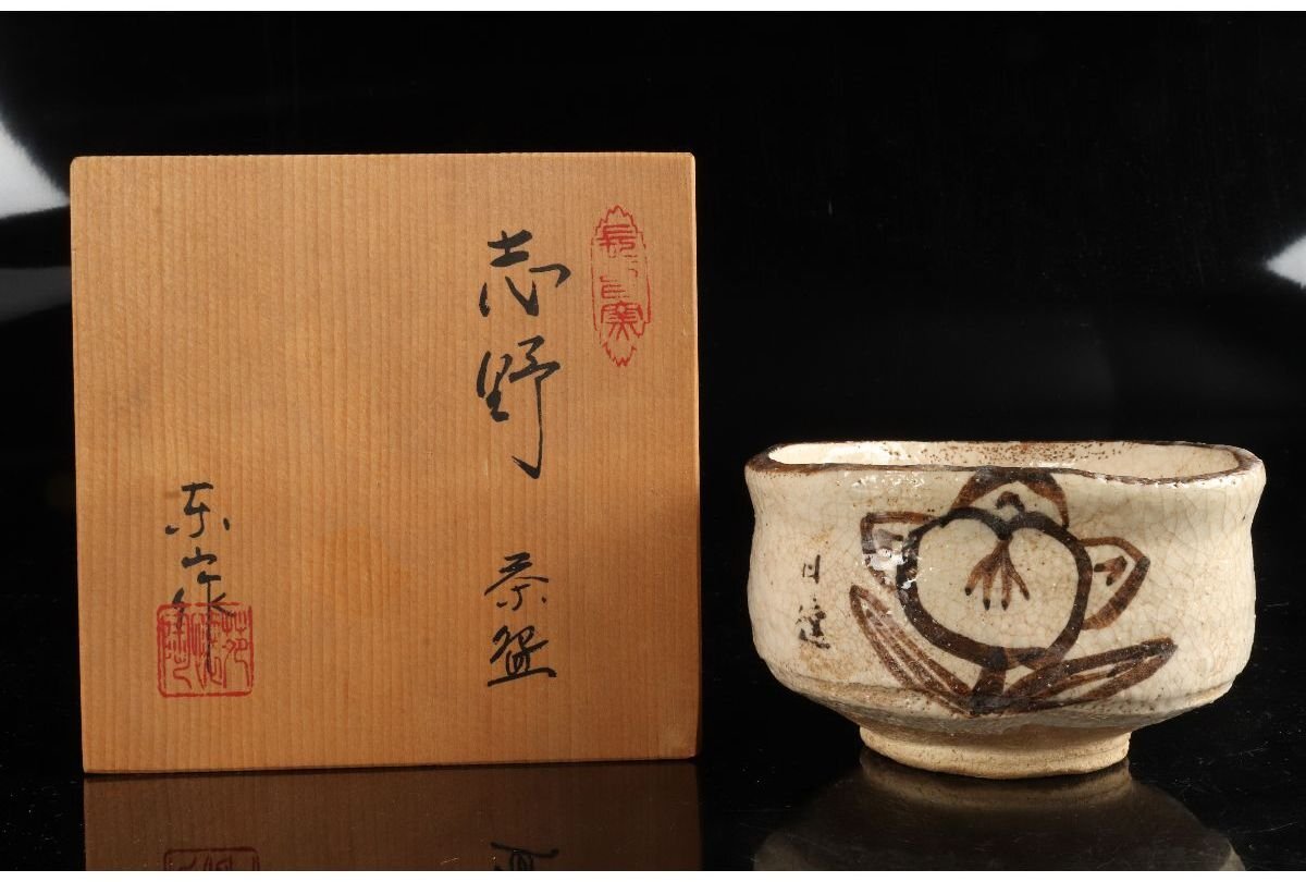 - [ギャラ藤]野田東山 造/志野茶碗/共箱/B-1146 (検索)骨董/茶器/茶碗/急須/茶托/置物/茶道具/割烹/抹茶碗
