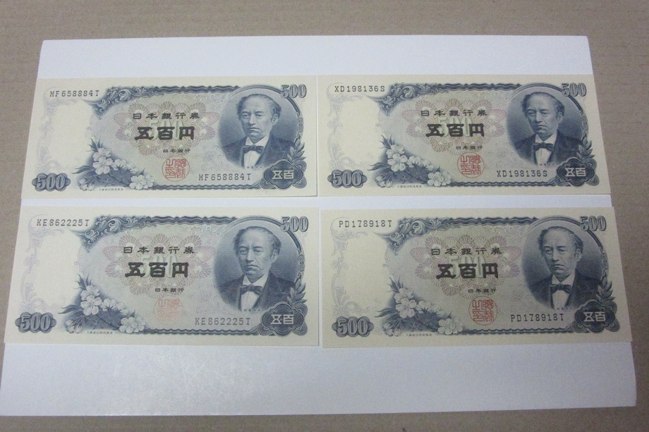 - ★美品 旧紙幣 岩倉具視 500円札 ピン札 MF658884T KE862225T XD198136S PD178918T 4枚★