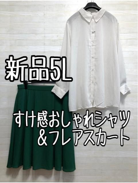 - 新品☆5L♪後ろステキなシアーシャツ&グリーンきれいスカート☆x912