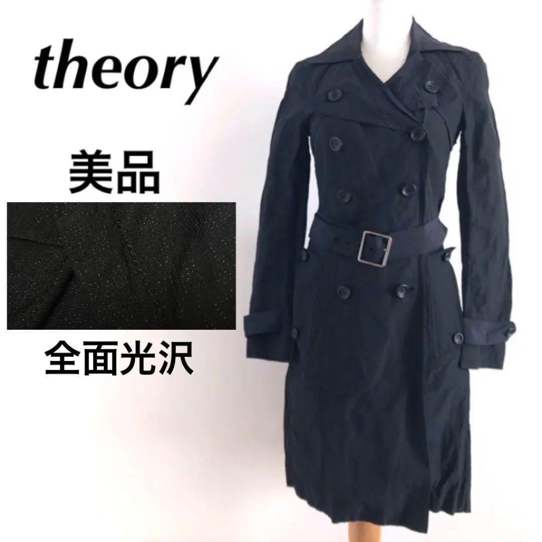 - 【美品】theory セオリー トレンチコート 光沢 ブラック お洒落 高級